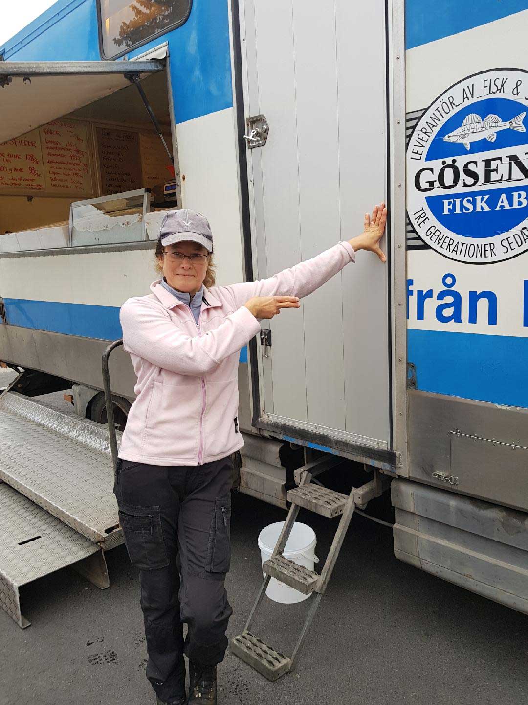 Varje onsdag öppnar Anna luckorna till havets rikedomar. Då har Gösens Fisk parkerat utanför Hemköp.