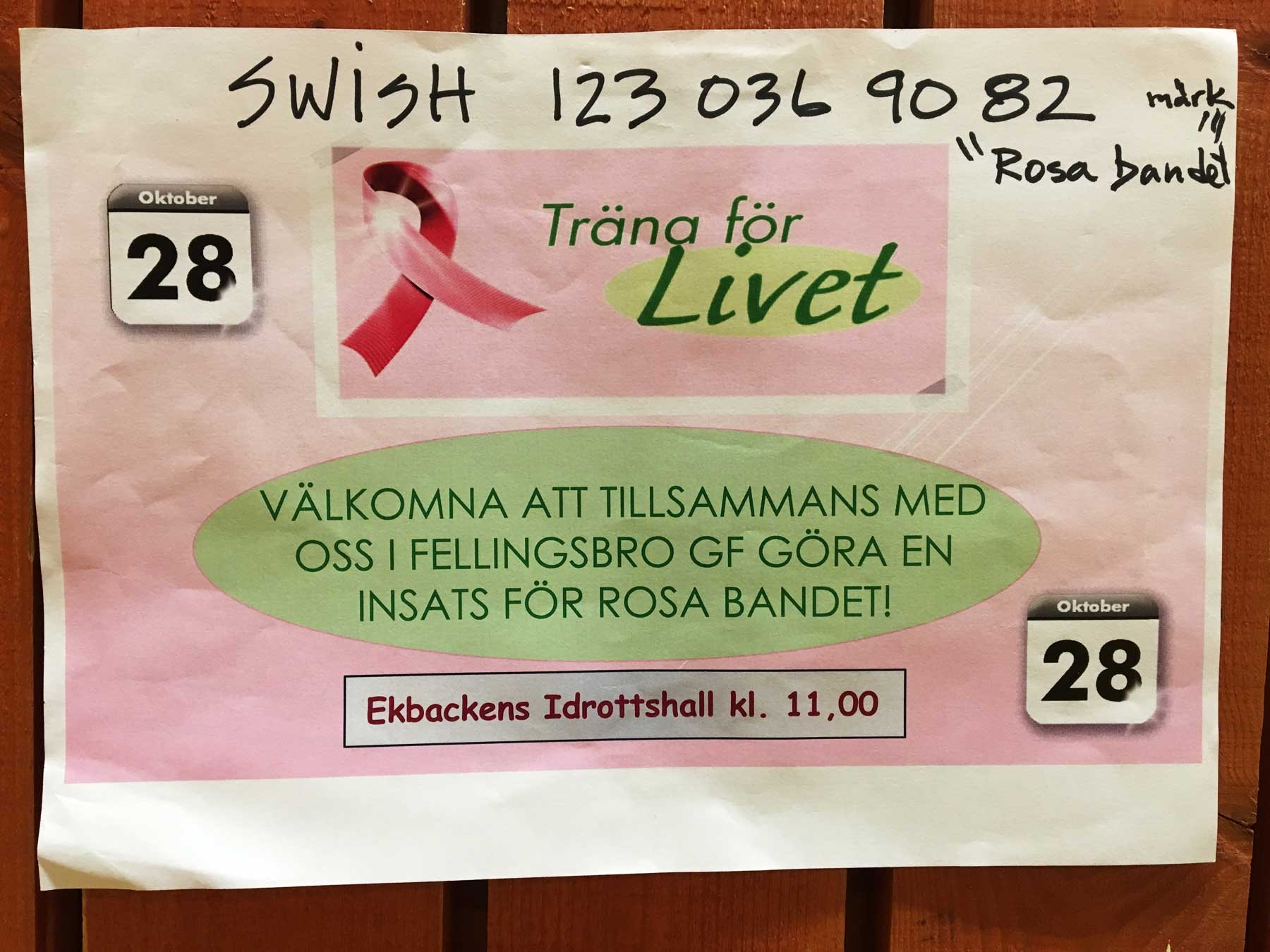 Deltagarna gav minst 50 kronor var till Rosa bandet-kampanjen som stödjer forskningen kring bröstcancer.