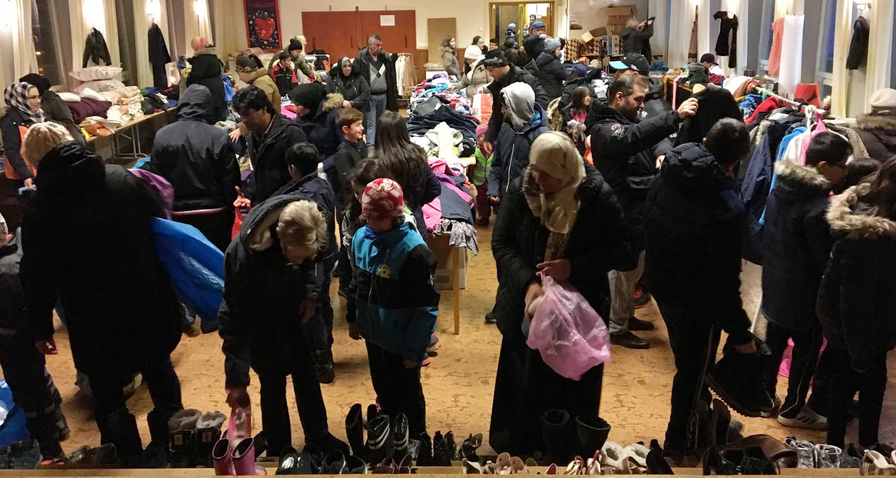 Matsalen fylldes snabbt med glada spekulanter på de saker som samlats in.