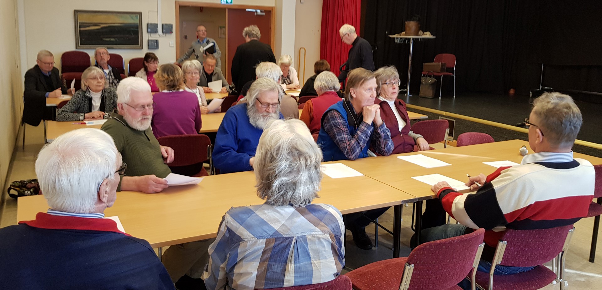 Ett trettiotal medlemmar inledde SPFs årsmötet med en gemensam måltid på folkhögskolan under gemytliga former.