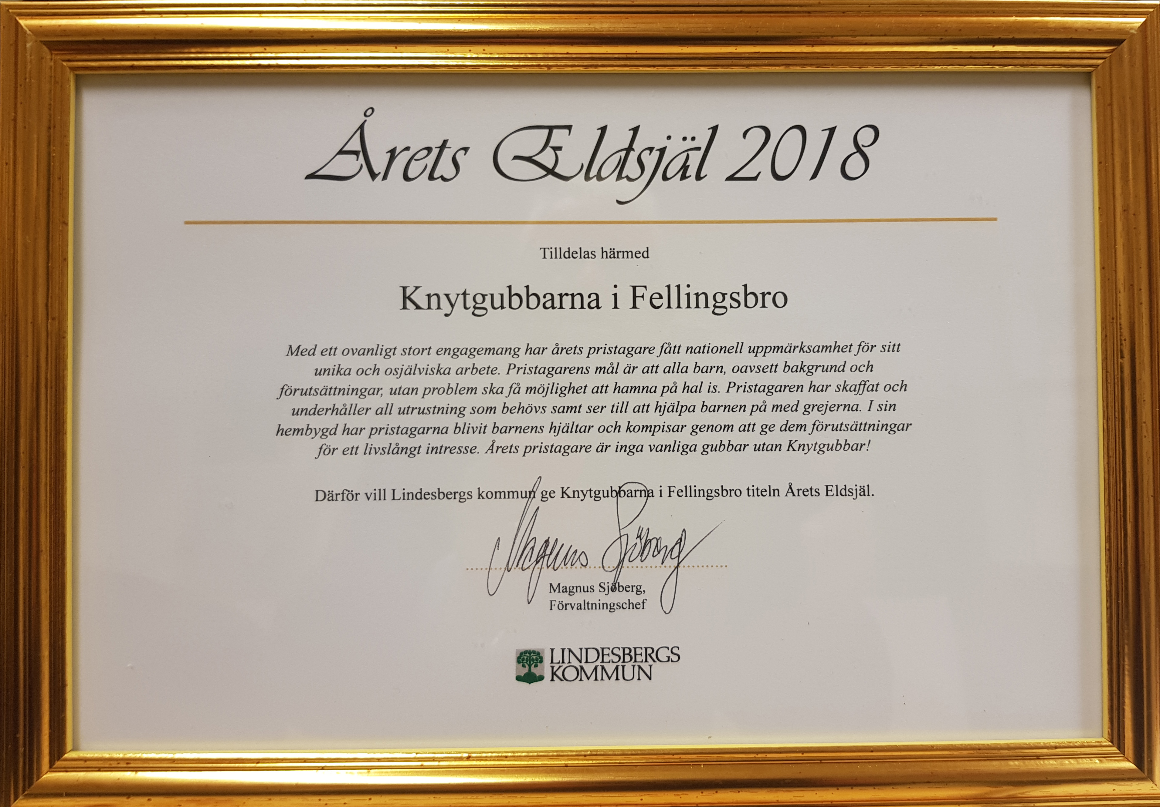 Knytgubbeglädje skapade även ”Linde” kommun som utsåg Knytgubbarna till årets ”Eldsjälar” i kommunen.