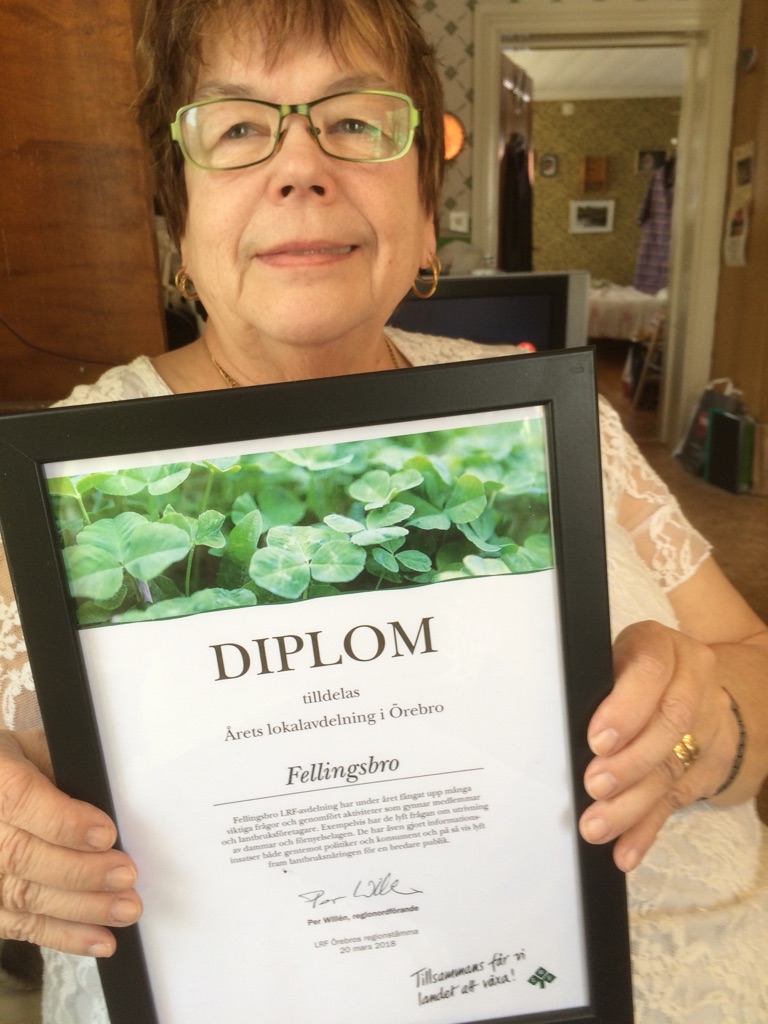 Så lyder motiveringen till att Fellingsbro LRF-avdelning – förutom glädjen att vara bäst – även fick diplom, blommor och en check på 1000 kr.