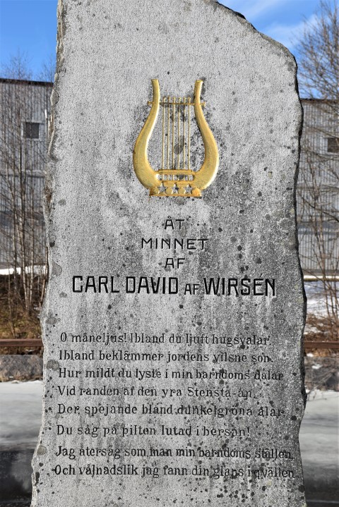 Carl Thure af Wirsén kom till Rockhammar som disponent 1848 så hans son Carl David af Wirsén (1842-1912) kom att växa upp här. Carl David studerade i Uppsala och avlade filosofie kandidatexamen 1866 samt promoverades till filosofie doktor samma år. 1879 blev han invald i Svenska Akademien och från 1884 dess ständige sekreterare. Han skrev mycket poesi och psalmer (bland annat En vänlig grönskas rika dräkt) men även litteraturkritik och var motståndare till Strindberg och Heidenstam. Det var Carl David af Wirséns förtjänst att Nobelpriset i litteratur hamnade hos Svenska Akademien att förvalta och utdela. En senare disponent och ägare på Rockhammar Carl af Geijerstam reste denna sten vid Sverkestaån till minne av sin morbror. Samma släkt ledde bruket från 1600-talet och fram till 1934.