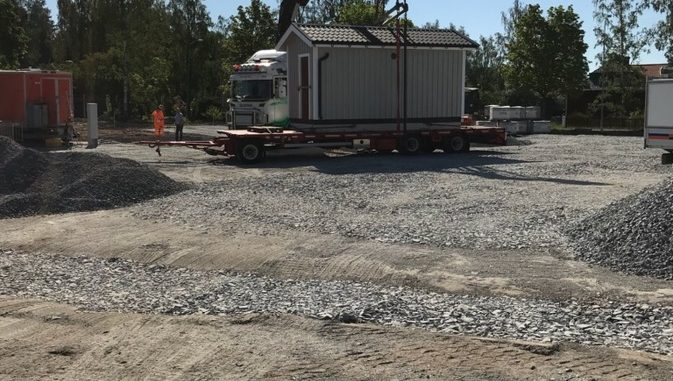 Huset med toaletten är på plats på rastplatsen vid Motorbolaget/Mekonomen. Nu förbereder man asfalteringen. Sedan blir det dags för grönt gräs och gröna buskar samt en och annan sittplats.