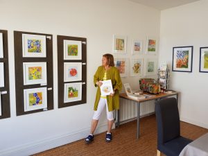 -Självfallet vill jag att tavlorna ska komma till sin rätta. Allt ifrån att bakgrunden ska framhäva motivet på tavlan till att ramen är färgad till att matcha färgerna i tavlan.