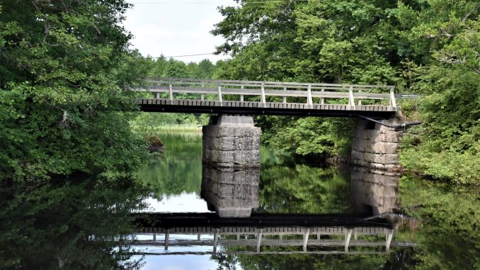 Bilderna visar vägbron före vattenfallet och vägg på kraftstationen.