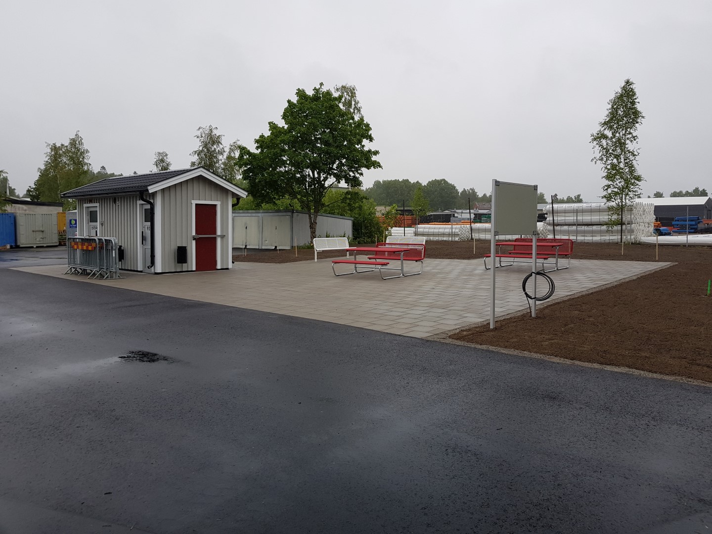 Men nu, den 27 juni kl 15.00 kommer den nya rastplatsen att invigas även om den ännu inte är helt klar. Den långvariga torkan har ställt till bekymmer. Det gör att planteringen av träd och buskar flyttas fram till sensommaren så att de får en bättre chans att verkligen kunna slå rot och utvecklas ordentligt.