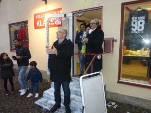 Efter välkomsttalet av Karl Arne Löthgren klippte Irja Gustavsson av bandet med van hand. Besökarna provadekläder, pratade med varandra och hade det väldigt trevligt.