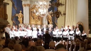 Det hela avslutades med att körerna omringade församlingen med härliga luciasånger.
