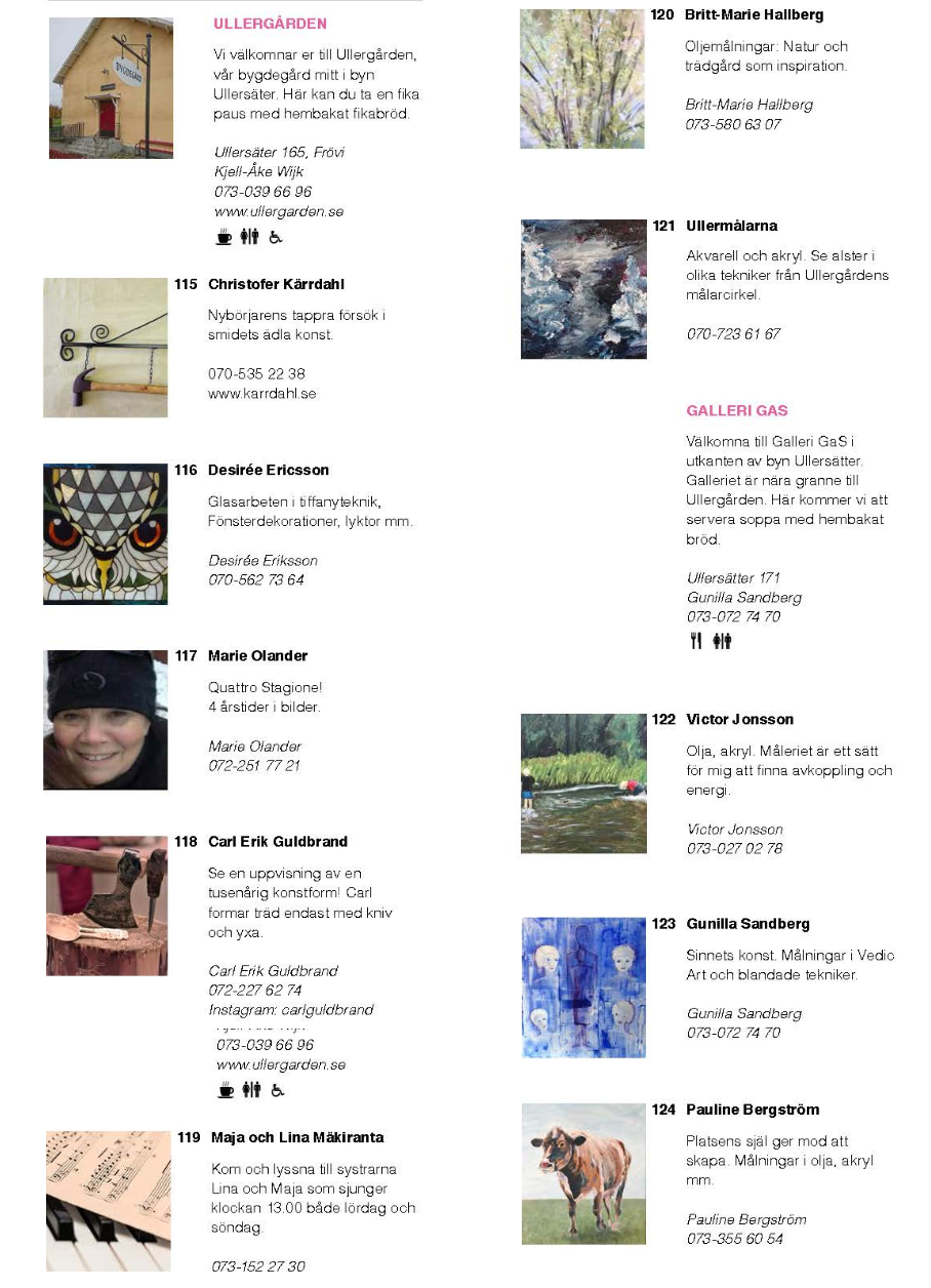 – Som vanligt står Ullergården som värd för ett antal utställare. Givetvis håller vi cafét öppet. Vi hälsar alla hjärtligt välkomna!