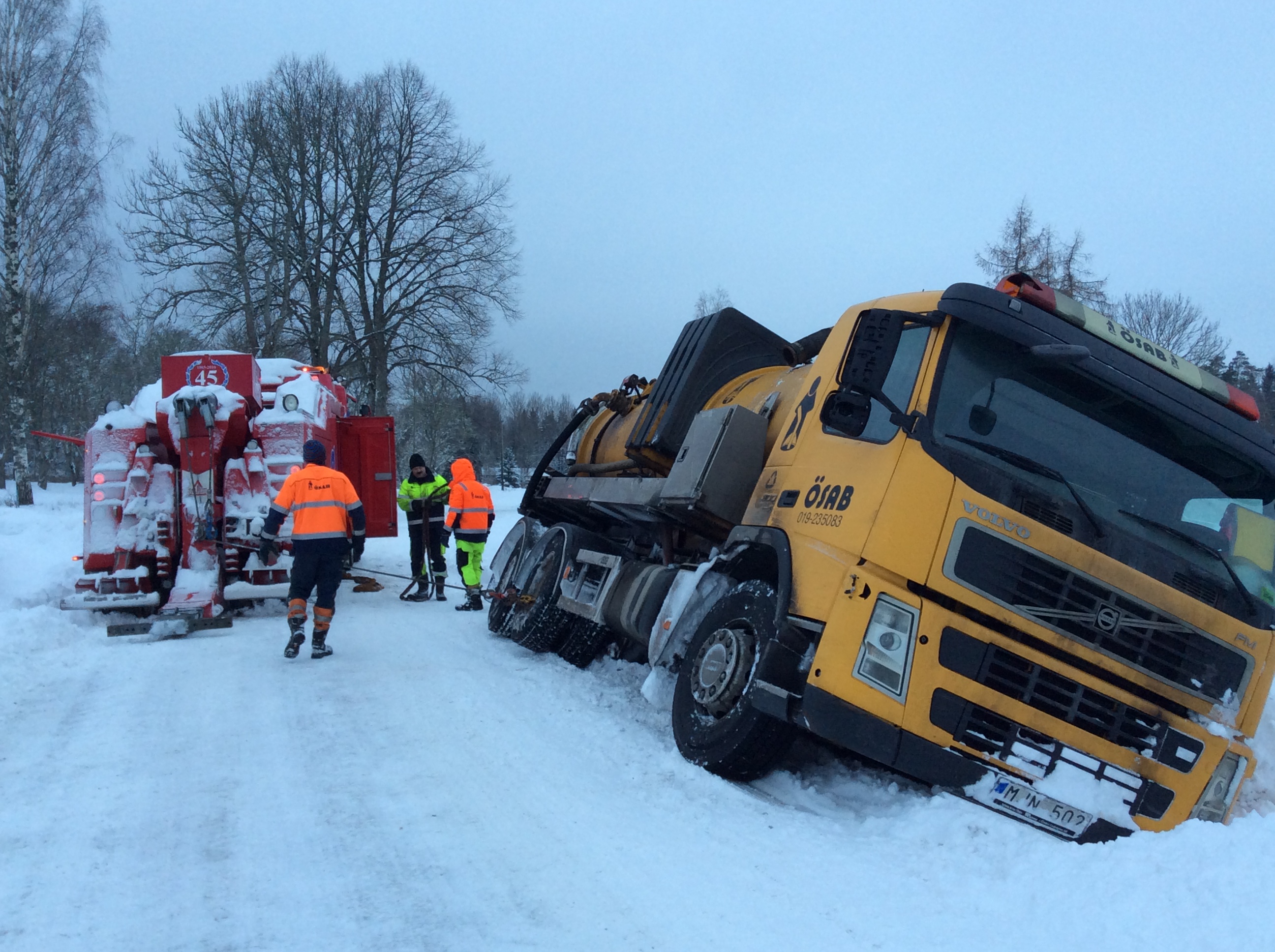 Det senaste tillbudet var måndagen den 28 januari när en trettio ton vägandes tankbil med slam, åkte av vägen i Finnåkers norra by. Inga personskador denna gång, men man bävar vad som skulle kunna hända med t ex skolbussarna på en del ställen av vägen, där det sluttar åtskilliga meter ner till botten av diket. Hemska tanke!