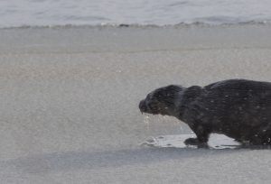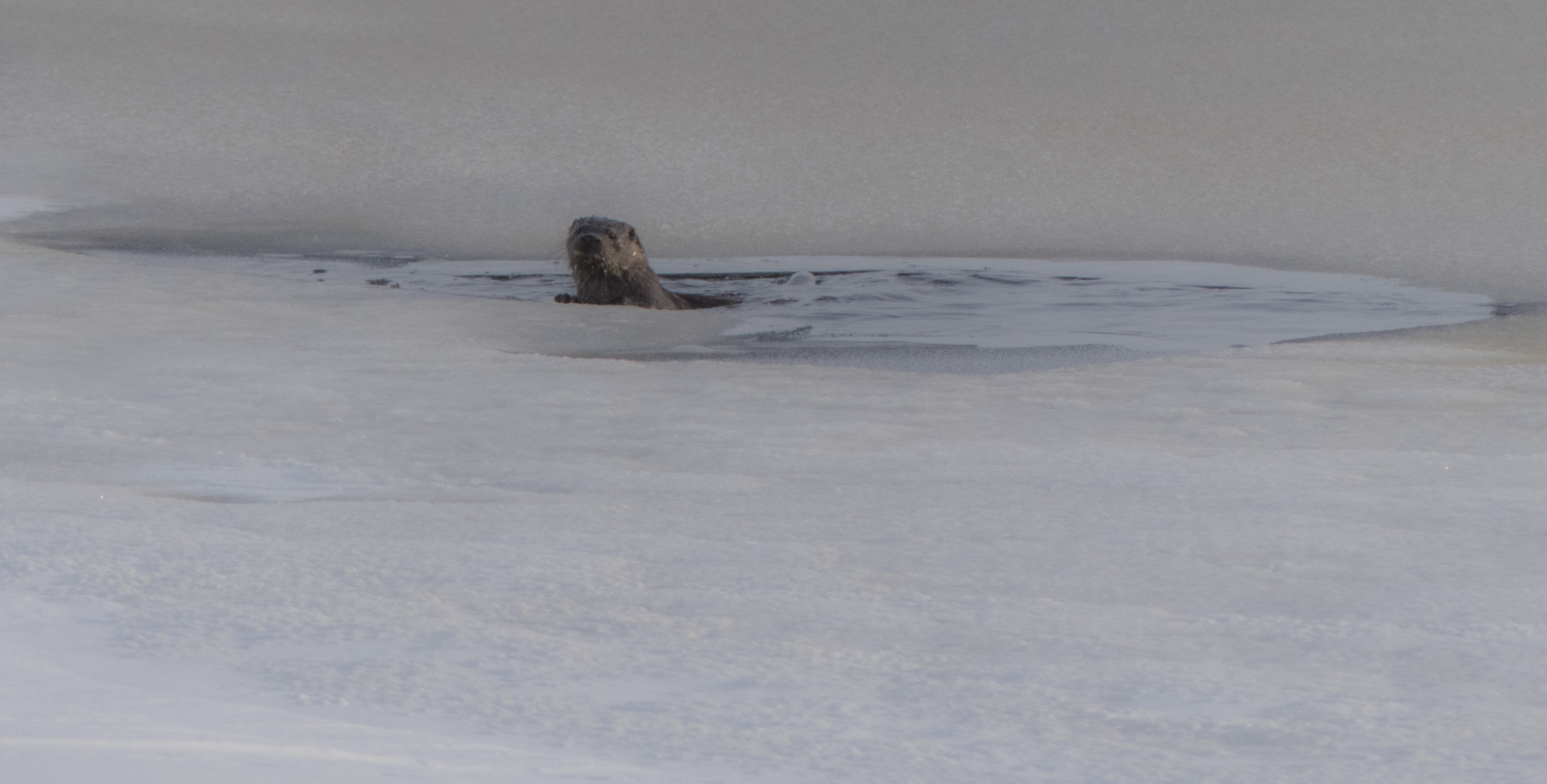 Johan Wretenberg säger ”Jag skidade längs Arbogaån, i drivsnö och med dålig kondis. Mitt mål var att få fotografera utter. Plötsligt såg jag tre stycken samtidigt på långt håll i tubkikaren så jag blev rejält taggad. Plötsligt kom de springande på isen. De överrumplade mig totalt. Jag kastade mig ner i snön och försökte desperat få upp kameran ur väskan. Sämsta tänkbara förhållanden. Klockrent motljus och snö i luften. Till detta tre livliga krabater som for upp och ner ur vattnet. De passerade mig på mindre än 10 meters håll och jag lyckades få till några bilder. Men jag är långt ifrån nöjd så det lär bli fler utterturer.