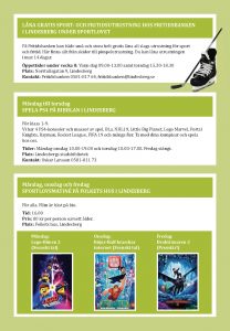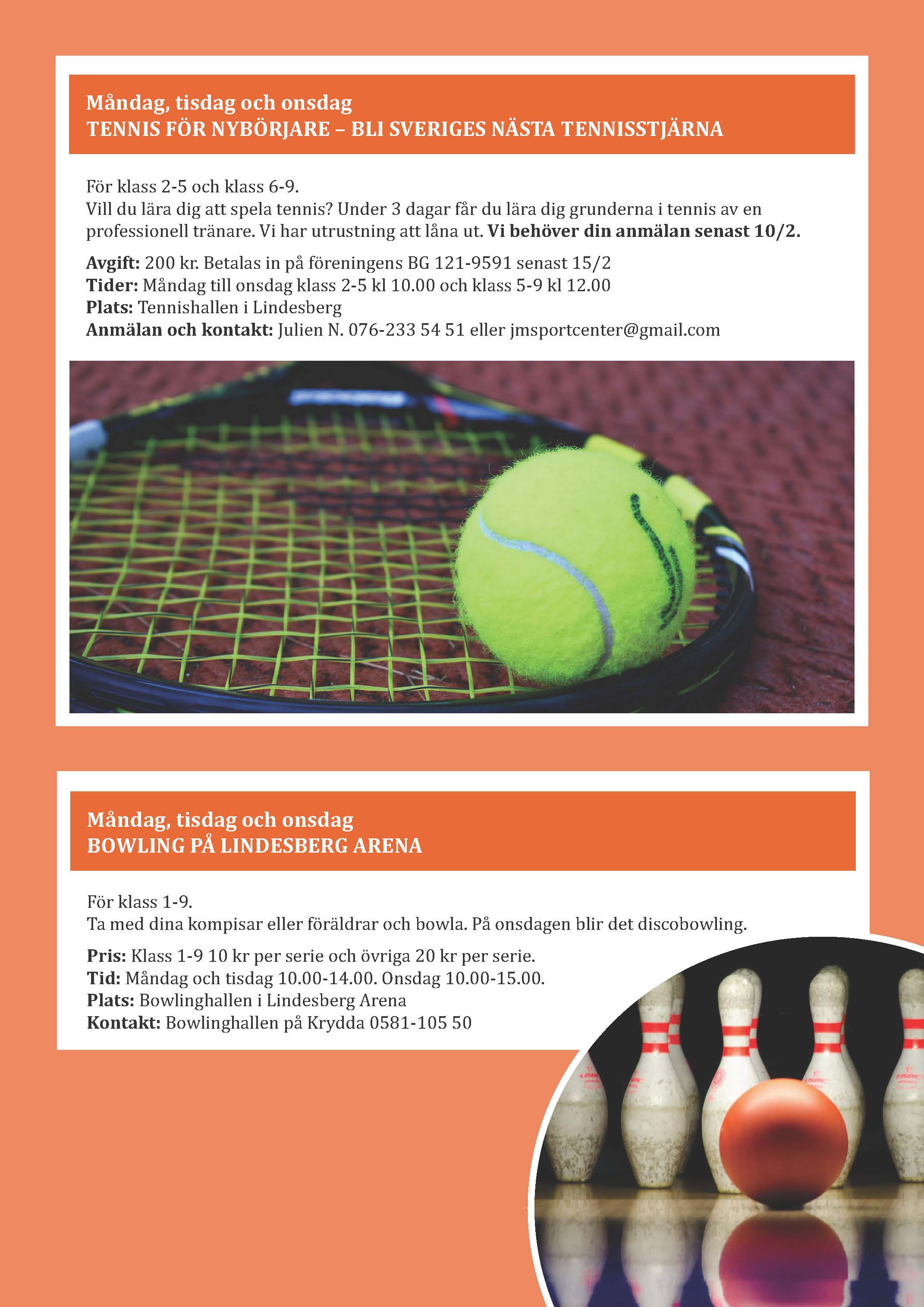 Skridskoåkning, öppna fritidsgårdar, biomys, lär dig spela tennis, följ med på skidresa till Romme och eller varför inte hänga med på aktivitetsdagen på Lindesberg Arena? Här på hemmaplan i Fellingsbro socken blir det en sportlovsaktivitet i bland annat Nyckelby Bygdegård torsdagen den 21 februari kl 13.00. Då blir det korvgrillning, fika, tipspromenad och andra roliga kuligheter.