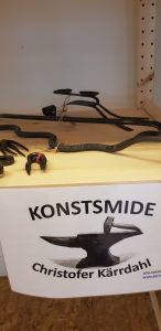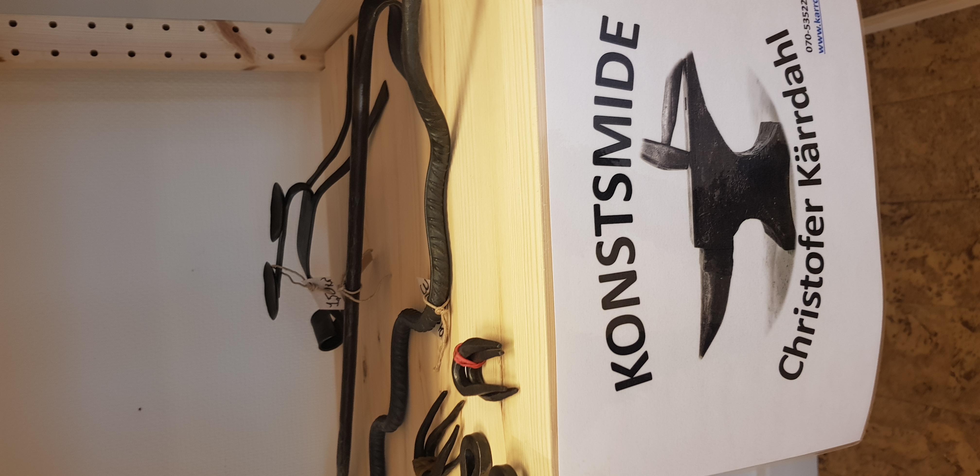 Även Christoffer Kärrdahl, Skinnartorp, har travat in i sockenstugans ”härköp” med sina konsthantverk som till stor del har sitt ursprung i hästskor. Christoffer gör allt från ljusstakar till rena bruksföremål som hovkratsar till hakar och haspar till exempelvis gamla stalldörrar. Christoffer sprider även ljus över bygden genom bl a de ljuslyktor han tillverkar tillsammans med sin svägerska Desirée Ericson.