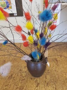 Från Balsta Gårdsbutik, Ann-Sofie Ahlgren, kommer ”tussriset”. Det är bokstavligen talat ett ulligt, gulligt, färgsprakande, härligt påskris. ”Fjädrar anamma” skulle man kunna säg om detta ris vars fjädrar är av ull.