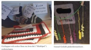 Kerstin Holgersson, Bårfåna, har lämnat in saker från sin stick- och virkverksamhet. Det rör sig bland annat om strumpor och grytlappar i många fina färger.