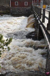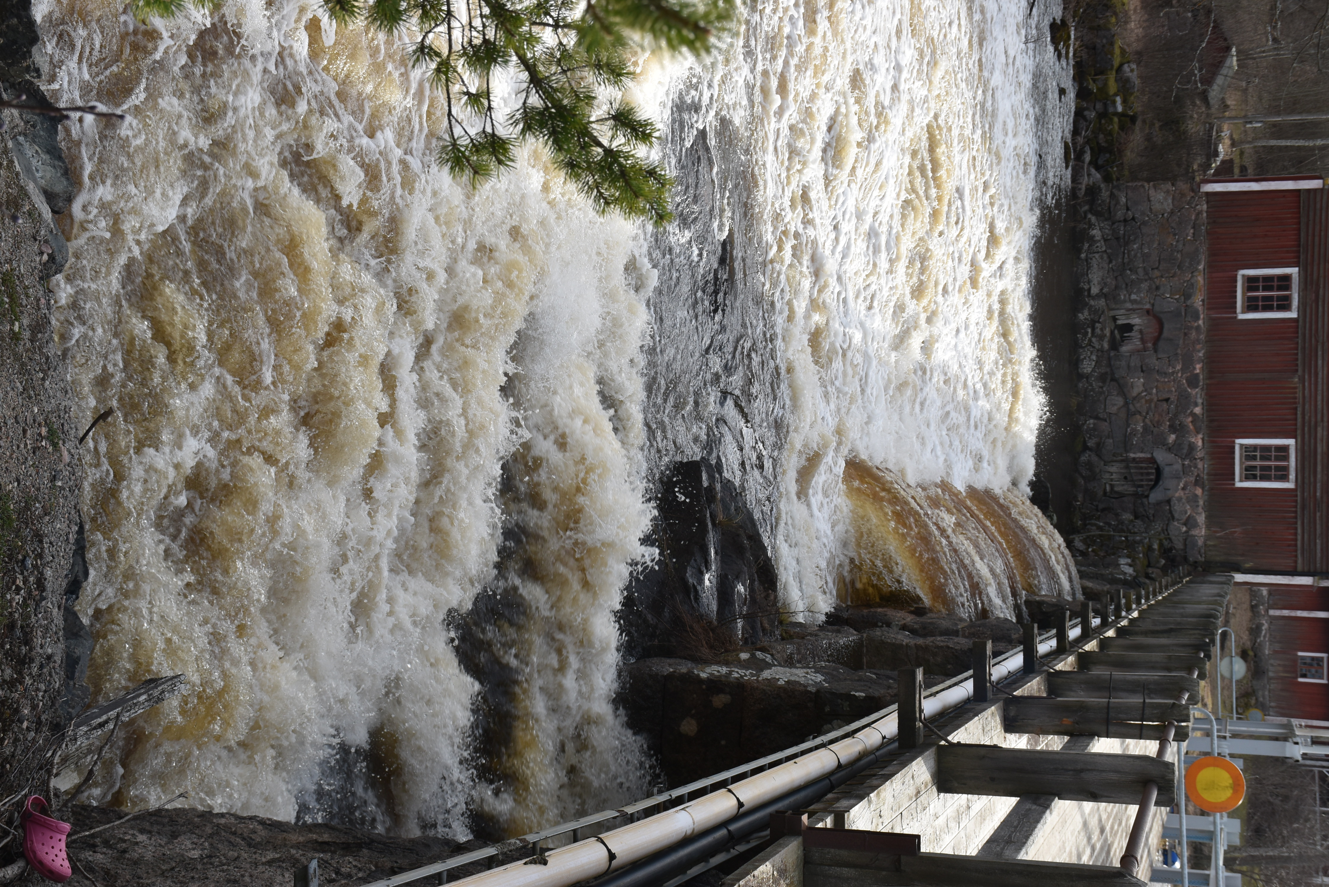 Den har ett stort vattensystem med sjöar och åar som tillför vatten. Nu fylls vattnet på så snabbt att kraftbolagen måste öppna dammluckorna. Här är ett par bilder från Frötuna dammar där vattnet nu forsar fram över de stenar där oftast endast är några enstaka vattenpölar. Detta är verkligen ett skådespel som bör se och höra på plats.