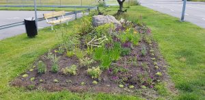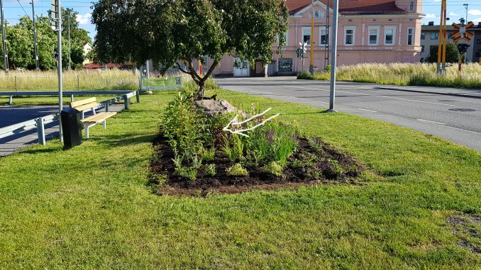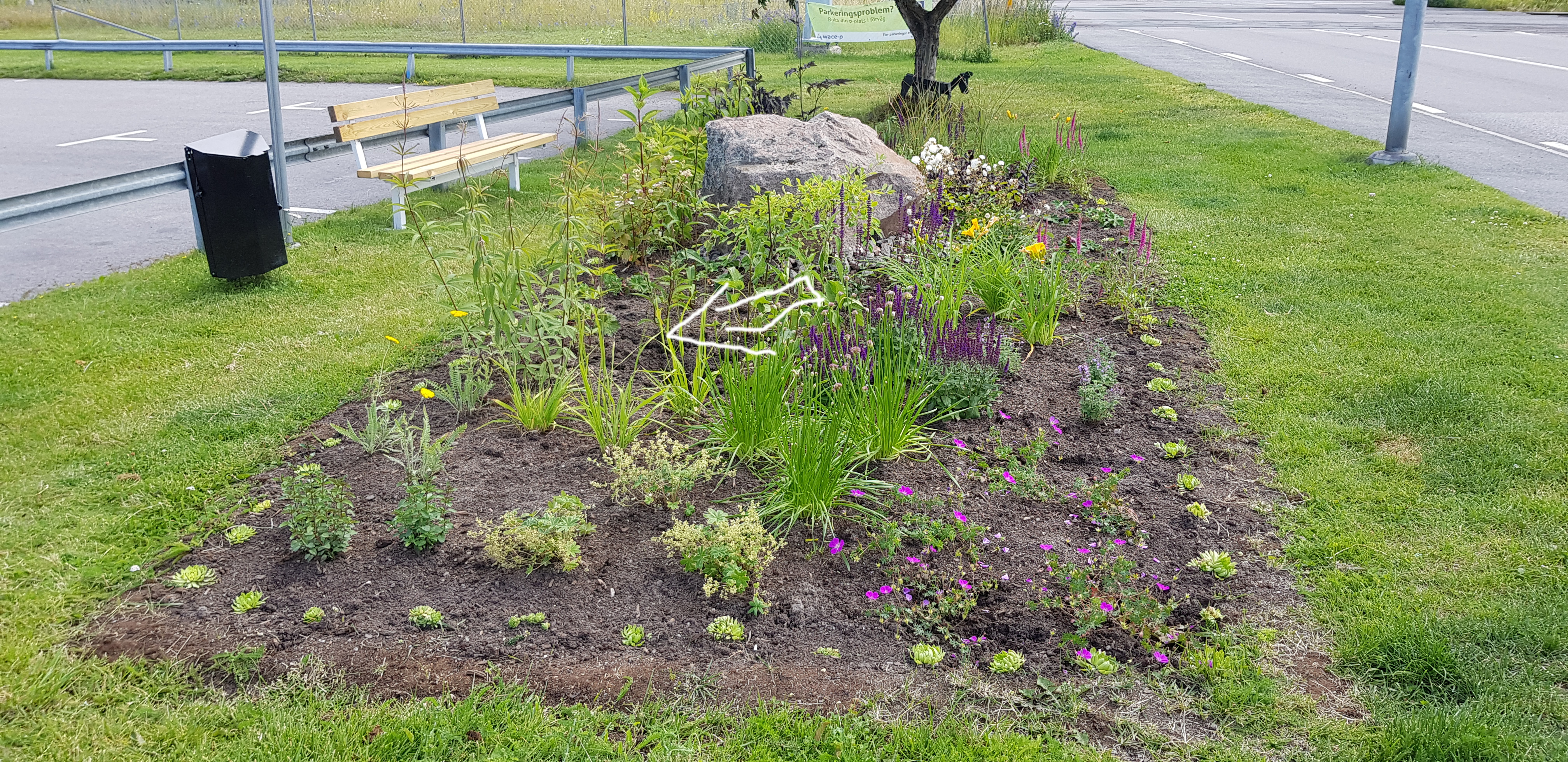 Tyvärr har någon redan nu inte kunnat hålla fingrarna i styr. Denne har varit i rabatten vid järnvägsövergången och tagit en av silveraxarna som planterades.