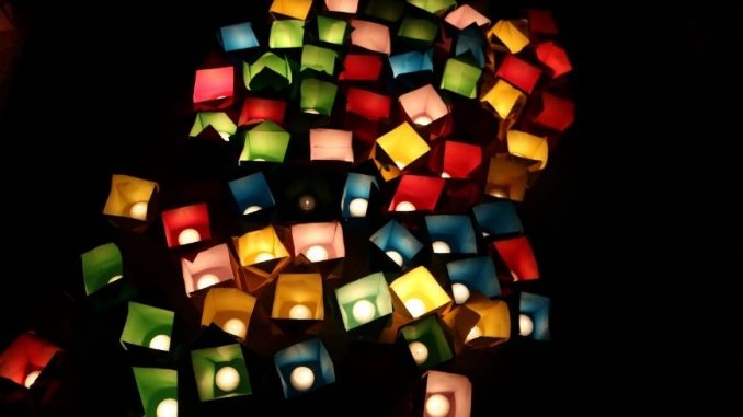 Samling kl. 18 i församlingshemmet. Vi viker fredslyktor i papper som vi sedan släpper i sjön. Facklor och marschaller lyser upp vägen ner till sjön. Fredstal av Hassan Mountagui och Amer Abdulla från Örebro moské. Därefter sång av Världens kör.Detta är en symbolisk handling där var och en får skicka med sin personliga tanke – ett ljus i mörkret för fred och försoning.