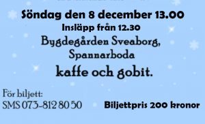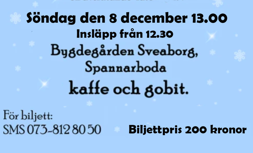 Pernilla Larsson säger att föreställning lördagen den 7 december är utsåld: Det ordnas en extra föreställning söndagen den 8 december kl 13.00. Vid för få bokningar blir det ej någon extra konsert.