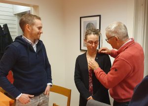 Klubben har en liten ceremoni där man med en nål bekräftar medlemskapet.