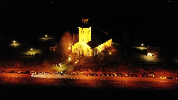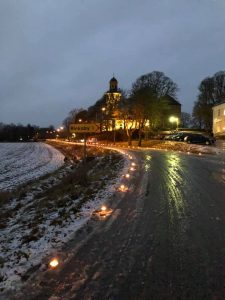 Kl. 18.00 började Luciagudstjänsten och besökarna välkomnades av 600 stycken brinnande marschaller. 🌟