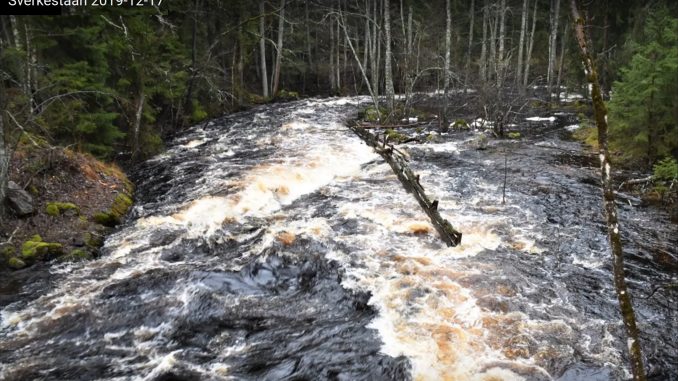 Under november och december har flera långvariga regnområden passerat Sverige och fyllt vattenmagasinen. Nu är det flödande vatten som strömmar fram i vattendragen här. Tisdagen den 17 december följde vi Sverkestaån från Kåfalla till Stensta med stopp i Storbo och Rockhammar.