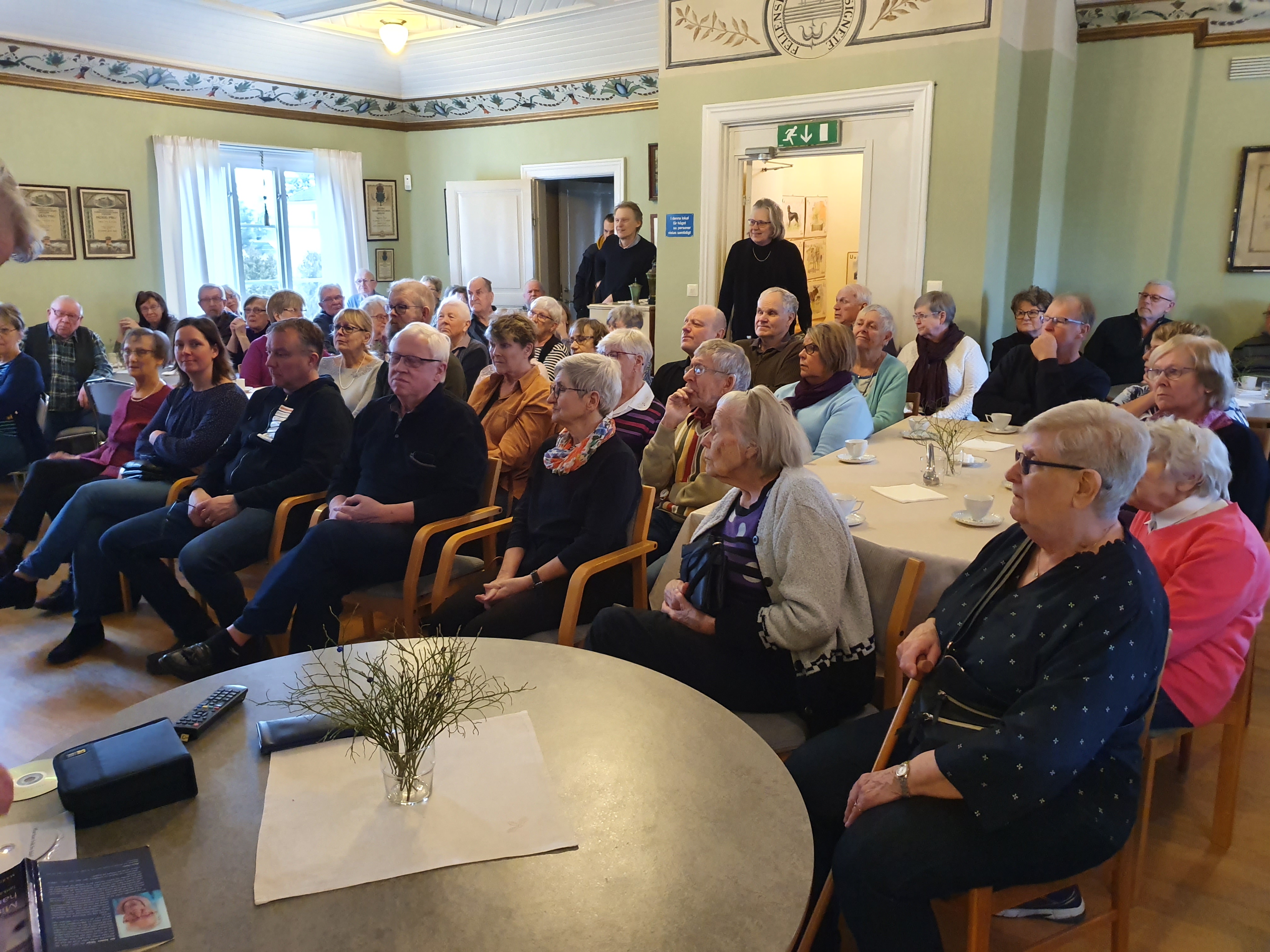 Sune Hellberg som håller i Hembygdsföreningens bildarkivet hälsade alla besökare hjärtligt välkomna till en till bredden väldigt välfylld sal. Dagen var väl vald eftersom många inte haft tillfälle komma till tidigare möten då legat på dagtid i arbetsveckan.