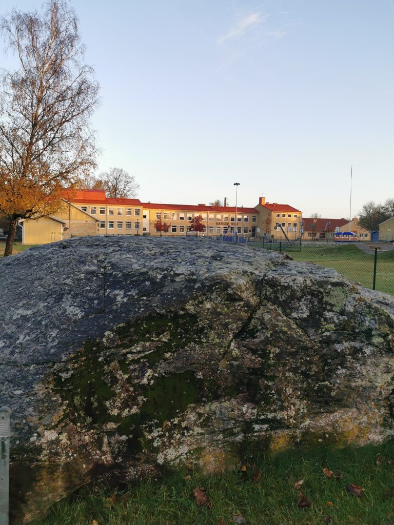 Tänk den stora stenen som vi ungar inte kunde låta bli att klättra upp på. Den knallade vi förbi när vi skulle ha syslöjd med Barbro. Stenen upplevdes så stor. Men vi kämpade oss upp.