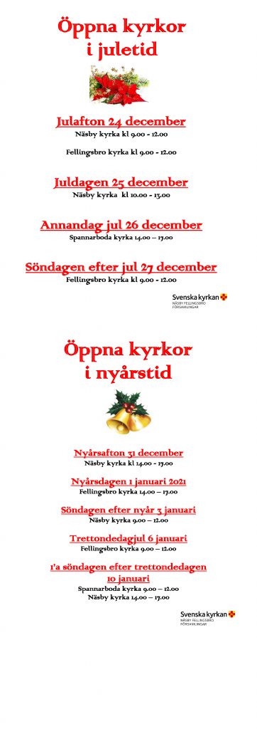 Vi kan inte fira gudstjänster pga smittrisk men vi håller kyrkorna öppna för besök.