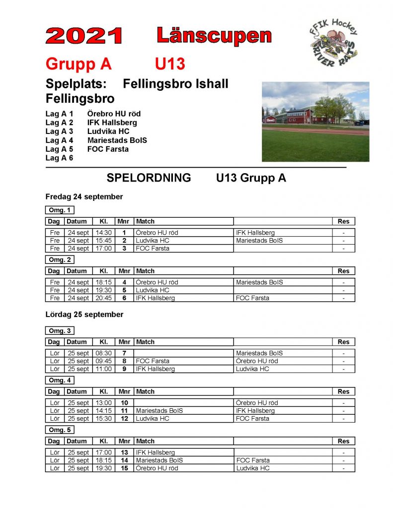 Fredag, lördag och söndag den 24 till 26 september kommer Länscupen Grupp A att spela i Fellingsbro ishall.