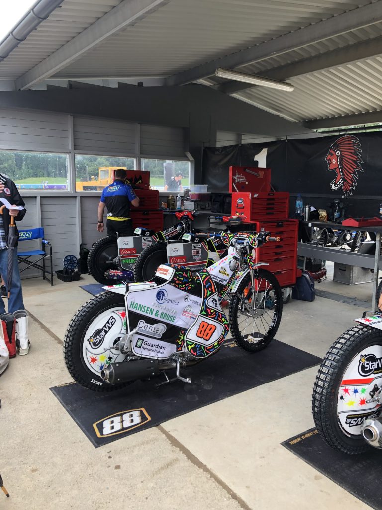 Hans Lundkvist guidade runt i klubbens historia och berättade om verksamheten på ett trevligt sätt. Sen följde ett besök i depån där förarna berättade och visade sina speedway cyklar och hur de justerar cyklarna mellan heaten.