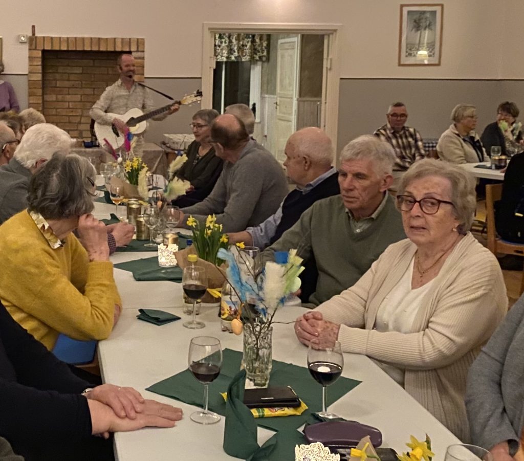 Underhållningen stod Johan Ljungkvist för. Med en bred repertoar och ett stort mått av humor roade han gästerna och gick också runt bland borden och sjöng. Det var ett uppskattat inslag som man gärna ser igen.