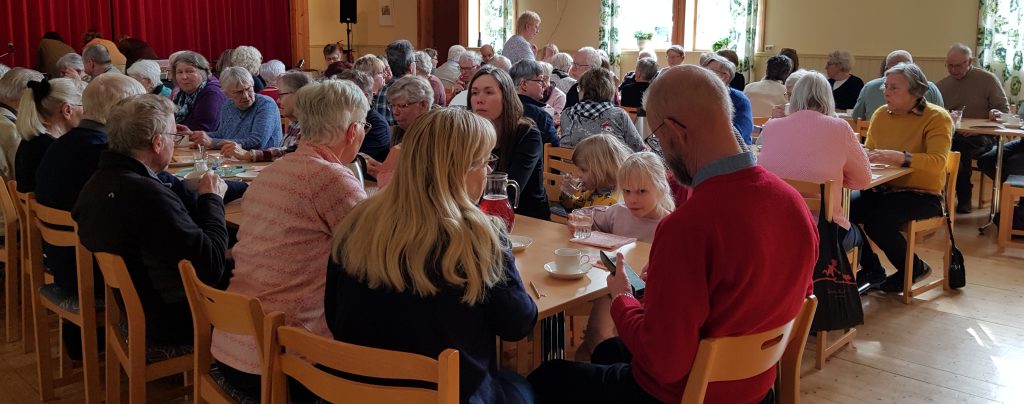 Från före halv fyra rann det in folk i lokalen, så att nya stolar och fler kaffekoppar fick bäras fram och dukas upp. När församlingsvärdinnan Margareta hälsade välkommen kunde hon berätta att det var publikrekord för en fredagsfika i Sveaborg.
