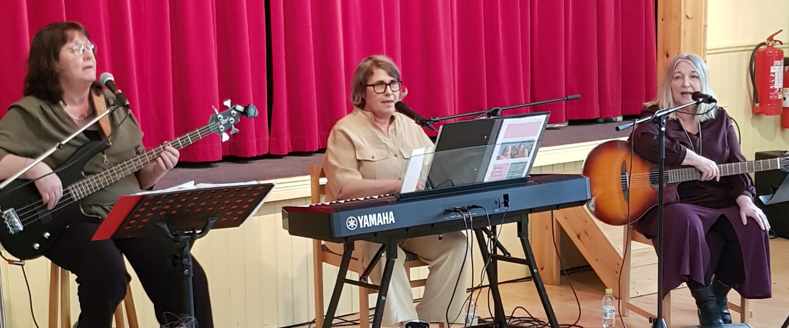 Till de gamla välkända låtarna som fick igång publiken att båda sjunga och klappa takten, hörde en tipsomgång på tio frågor. När trion vilade och besökarna fikade fick man kontrollera tipssvaren och därefter drogs tre vinnare.