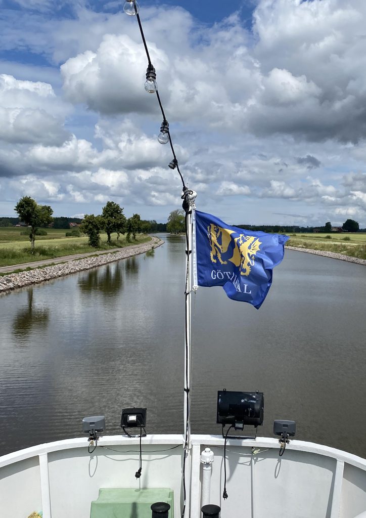 Lunchen – lax, förstås – serverades efter ett par timmar längs kanalen och en guide berättade underhållande om olika sevärdheter längs kanalen på såväl styrbords som babords sida.