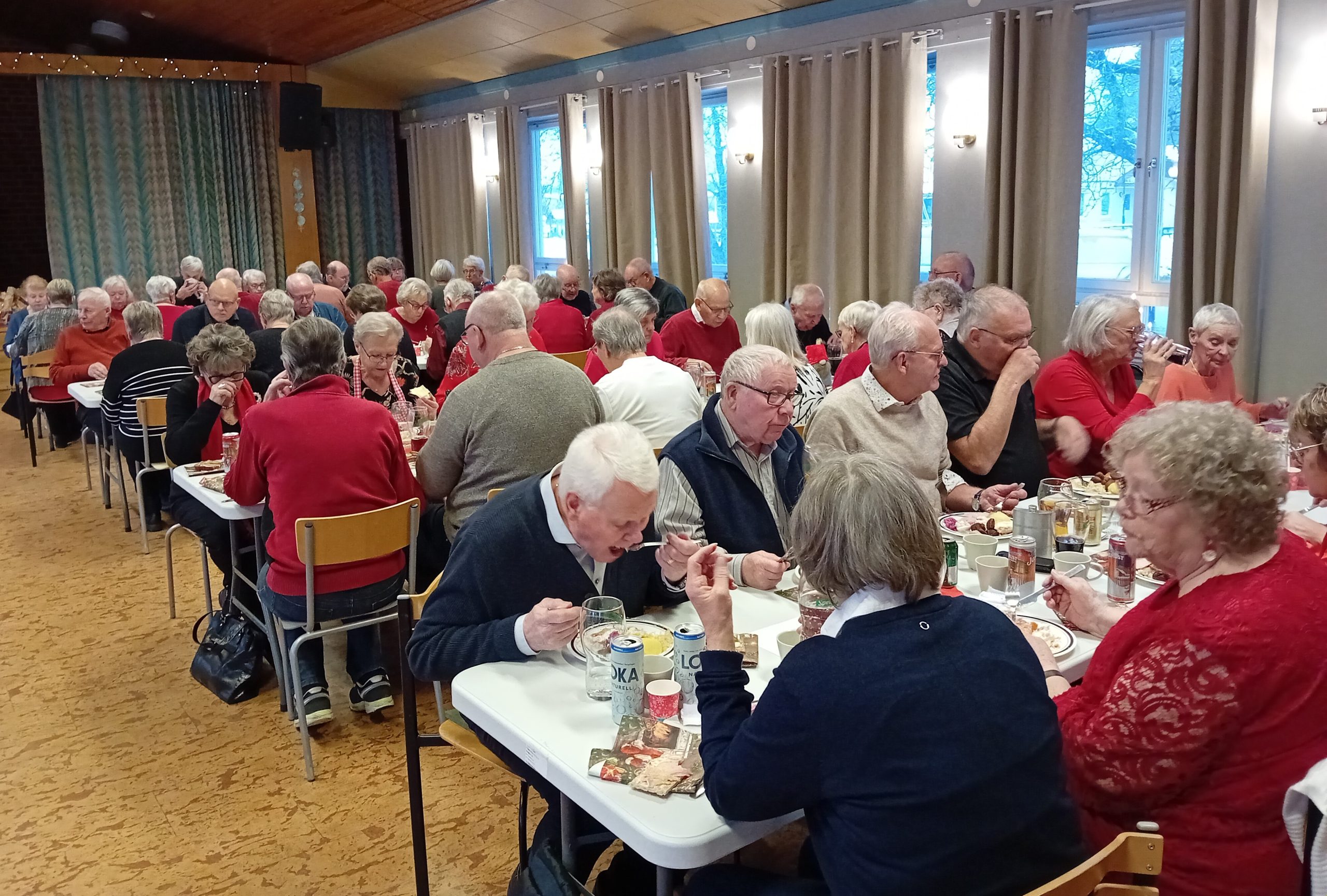 Redan klockan nio på morgonen den 7 december samlades Köksgruppen inom PRO för att köra igång med förberedelserna till PRO:s traditionella julbord med start direkt efter lunchtid. Till godsakerna hörde naturligtvis köttbullar, skinka, sill, lax, Janssons frestelse och allt annat gott som ska ligga på faten. Allt dukades fram i matsalen i Ekbacken för det dryga 50-tal matglada som skulle komma.