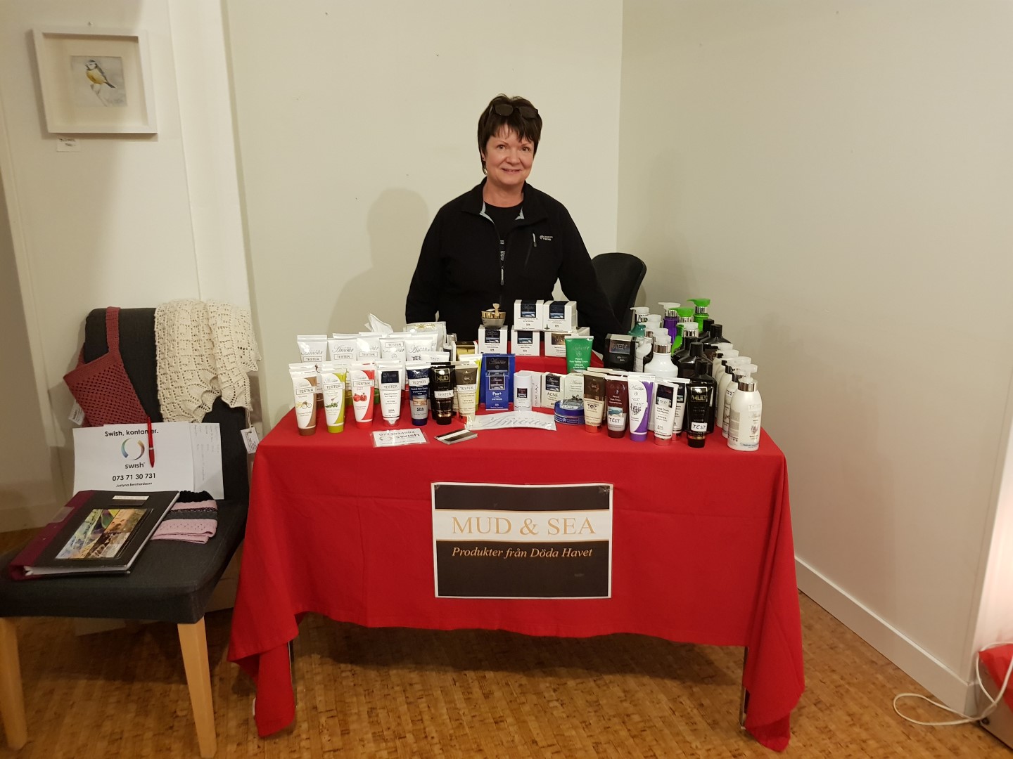 Ida Rosén Branzell har dukat upp sina böcker. Om hon själv inte är i salongen är det bara att swisha betalningen.