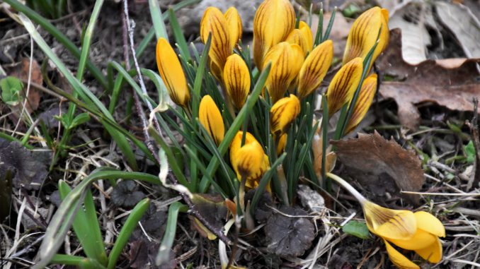 Den gula vintergäcken var väl först och snödropparna. Nu tittar fler små blommor fram. Tranor har både setts och hörts.